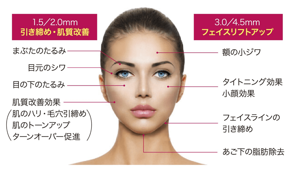 数あるたるみ治療の中でもマシンによる切らないリフトアップ治療は、メスや針を使わず、痛みやダウンタイムもなく手軽に行える人気の高い治療です。