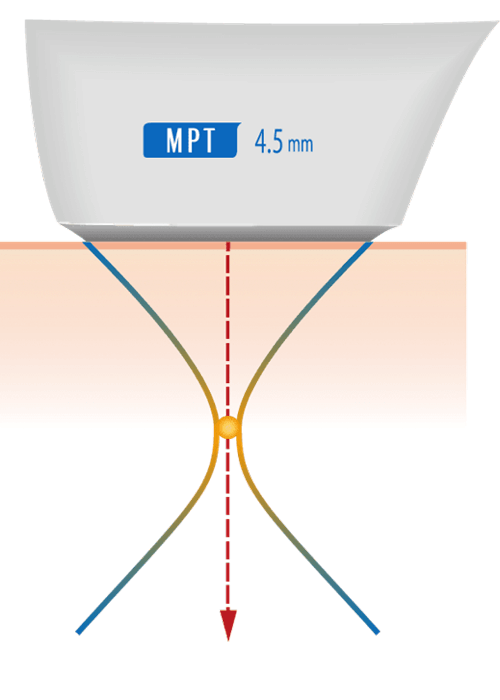 超音波の焦点をしっかり合わせることでエネルギーを1点に集中し、組織の温度を確実に上げます。