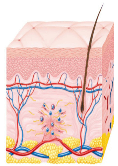 これにより大量にコラーゲンが生成・再生され、皮膚深層が新しい組織に置き換わることで強化されます。